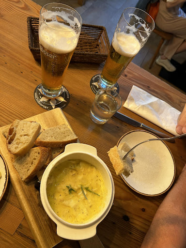 Read moreEs ist viele Jahre her, dass ich kein Trinkgeld gegeben habe. Wir hatten einen Tisch reserviert. Man hat uns vorgeschlagen draussen zu sitzen bis das Gewiter kommt und dann reinzukommen. Man wollte den Tisch drinnen fĂŒr uns freihalten. Letztendlich sasen wir dann im Regen und haben unser Abendessen vorzeitig beendet da man unseren Tisch ohne nachfragen vergeben hatte. Angeboten wurde uns noch ein Stehtisch. Da die Bedienung zum zahlen nicht kam bin ich rein um die Rechnung zu begleichen. Ăblicherweise wĂ€re eine Entschuldigung angebracht wenn sowas geschieht. Gereicht hat es aber nur fĂŒr eine schnipische Bemerkung weil wir vorzeitig gegeangen sind. Ich kann die vielen sehr guten Rezessionen ĂŒber tollen Service und hervorragendes Essen nicht nachvollziehen und werde den Verdacht nicht los, dass es sich um GefĂ€lligkeitsrezessionen von Kollegen und Verwanten handelt. Sowohl bei der QualitĂ€t des Essens als auch beim Service gibt es noch deutlich Luft nach oben. Gewitter, Kaffe und eine gutes Glas Wein zum Abschluss haben wir dann Zuhause im trockenen genossen. Nachspeise hatten wir ...