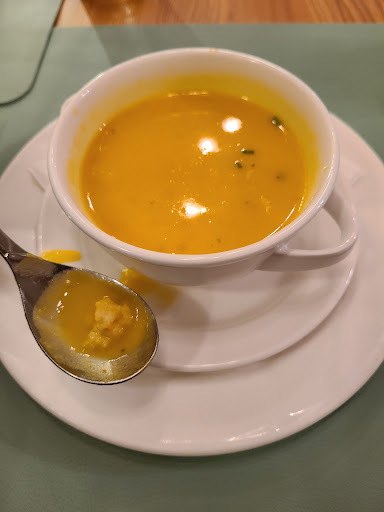 Read moreVorsicht ⚠ Leider negative Erfahrung gemacht. Das neue Restaurant wirkt auf den ersten Blick einladend. Leider fehlt aber jeglicher Hinweis auf Allergene in der Speisekarte und auch das offenbar ungeschulte Personal ist mit der Aufgabe "glutenfrei" völlig überfordert. Zuerst kam es zu einer Verwechslung mit "laktosefrei". Dann bekamen wir die glutenfreie Kürbissuppe mit Croutons...leider mussten wir sie aufgrund dessen zurückgehen lassen. 2 Min später kam der Ober wieder mit einer dezimierten Suppe (das Suppentellerchen ist schon mickrig klein). Die schlimme Überraschung folgte so gleich: Offenbar wurden die Croutons nur oberflächlich herausgefischt, denn es waren immer noch welche in der Suppe drin - siehe Foto. Sehr schade. Wir hätten selber lieber keine Glutenunverträglichkeit. In der Gastronomie im Jahr 2021 erwartet man sich einen kompetenteren Service und vor allem einen aufrichtigeren Koch! Da das Lokal offenbar neu ist, wird das hoffentlich...