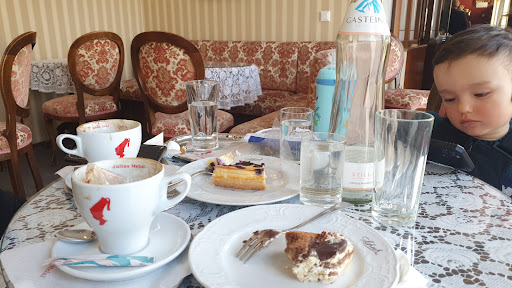 Read moreReally nice, cozy and classical cafe with very nice and helpful waiters. We had the blueberry cheesecake and caramel cherry while the little one ate some Mozart Kugeln (Pistachio Marzipan with nougat inside and covered in dark chocolate). Really good cake and coffee. The view is nice as you can see the whole valley from there. The interior is very 1800 in my opinion - wooden chairs that squeak, padded with rose/corral lace and plush. Definitely...