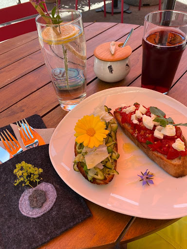 Read moreSo ein liebes, liebevoll geführtes kleines Kaffeehaus! Von handbemalten Steinen mit der Tischnummer über individuell gestaltete Zuckerdosen bis hin zu köstlichen selbstgemachten Torten, jede verziert mit einer essbaren Blüte, sowohl der Garten als auch der Innenraum eine Augenweide...und sie backen Brot und Gebäck, ach ich hätt euch so gern was abgekauft, aber es ging zeitlich nicht! Alles Liebe euch, ihr habt das beste...