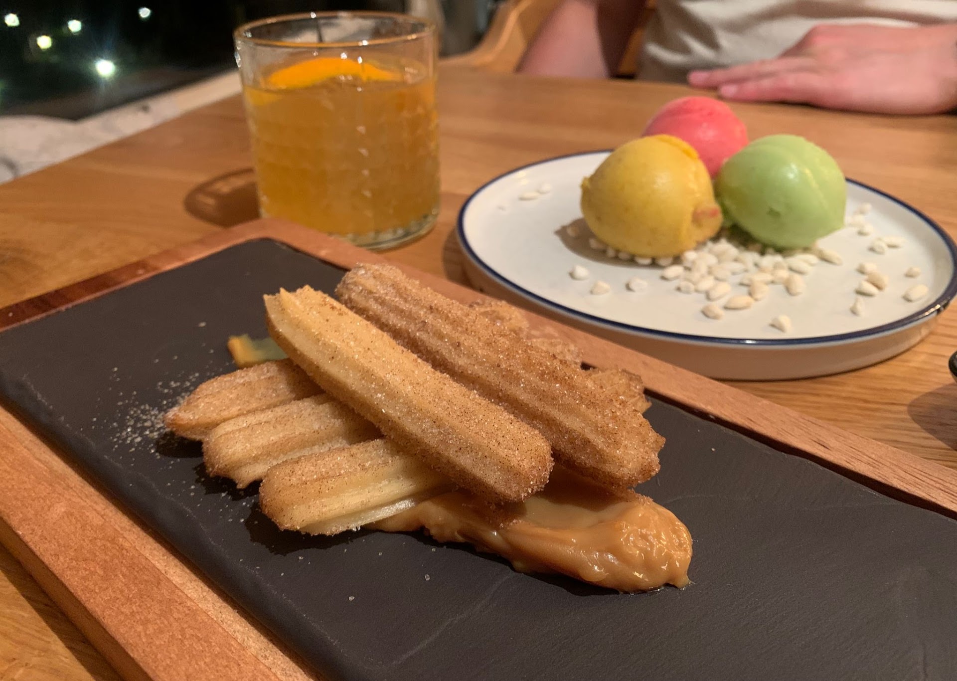 Negroni Cocktail: der viereckige versenkte Eiswürfel ließ kaum mehr als 3mm Platz für Negroni-Ingredienzien. So etwas an Abzocke ist mir in meinem ganzen Leben noch nie passiert. Nun gut, man hält den Mund, möchte sich den Abend nicht verderben - und scjon gar nicht die Stimmung des eingeladenen Einheimischen mit englischen Wurzeln
