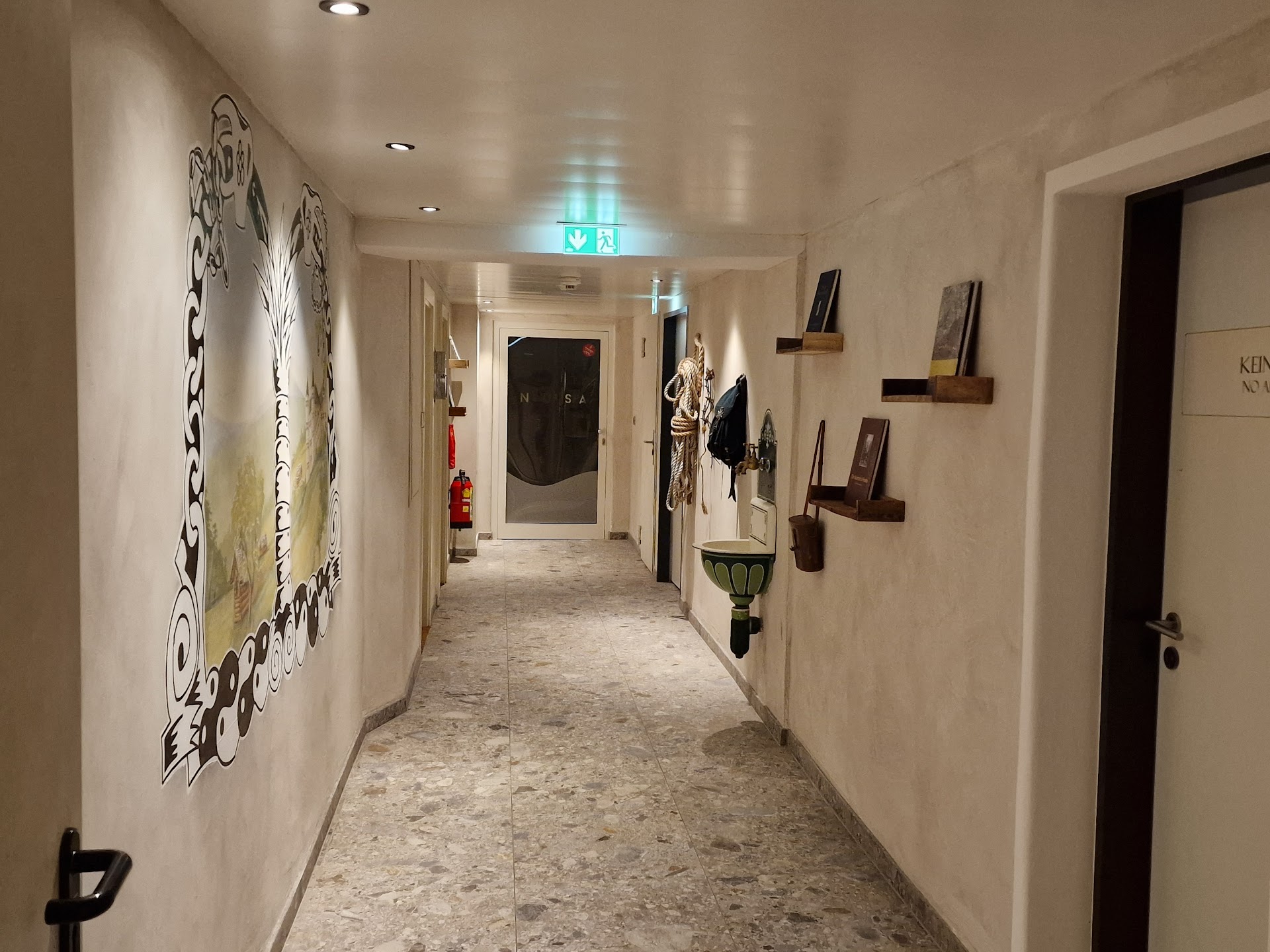 1/8 Rotwein Cuvée Kam nach ewiger Warterei endlich daher, geliefert von weiblicher holländischer „Fachkraft“, jedoch ohne zumind. kleines Wasserglas on the side. Auf die Frage und Bitte um Wasser meinerseits wurde auf Self-Service irgendwo im hinteren Teil des Lokals verwiesen. Meine Antwort: ganz sicher nicht, bei den Preisen sollte dies bereits mitgeliefert worden sei