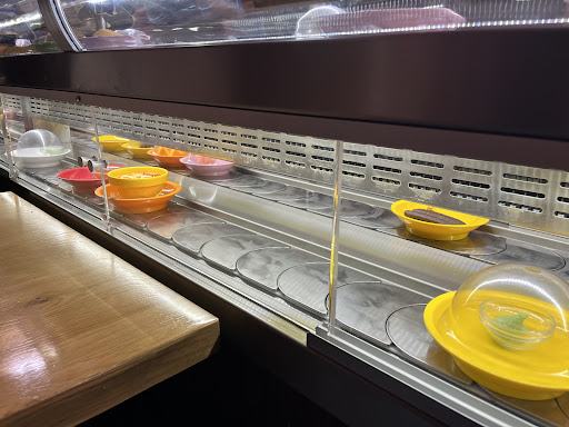 Beim Reingehen wurden wir schon mal eiskalt ignoriert. Nach 2 Minuten Warten haben wir uns selber einen Tisch gesucht, die übrigens alle dreckig waren. Erst dann sind die unfreundliche Bedienung, wahrscheinlich Mutter und Tochter, gekommen und meinten, sie würden jetzt schnell den Tisch für uns sauber machen. Kaum hatten wir uns hingesetzt, habe ich gefragt, ob das Laufband die ganze Zeit so leer bleibt oder ob da noch was kommt. Die Antwort war, dass es ihnen leid tue, es war gerade so viel los und es wurde viel gegessen, es würde noch etwas dauern, bis nachproduziert wird.