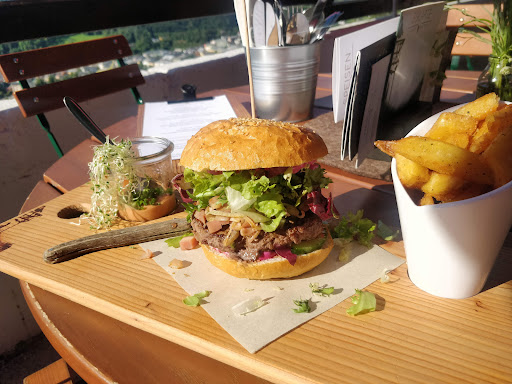 The food in the restaurant was a bit disappointing. The choice was also quite limited. We had three burgers (deer and steak), two Bosna sausages, a goat's cheese, and four coffees, which altogether added up to some 80 euros. The dishes were all hipster-ed up a bit by the addition of beetroot and things like that, but overall we thought the quality of the food didn't justify the price.