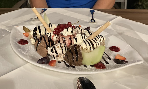 Read morePositiv kann ich die Bedienung und den Pizzateig bewerten. Wir waren die einzigen Gäste. Das Lokal selbst ist zwar schön eingerichtet, jedoch für einen Dinner extrem stark ausgeleuchtet. Wir hatten 2 Suppen. Knoblauchcremesuppe war gesmacklich überwiegend Sahne, mit Knoblauchpulver (vermuten wir) und ein sich noch nicht ganz aufgelöster Suppenwürfel. Gemusesuppe war gesmacklich verwässerter Tomatensaft mit ein paar darin schwimmenden Gemüsestücken und relativ salzig. auf der einen Pizza hätte es Gorgonzola geben sollen, war sowohl geschmacklich als auch visuell nicht fest zu stellen. die andere Pizza überfüllt mit in kleine Stücke geschnittene eingelegte Peperoni, so dass die Pizza hauptsächlich nach eingelegte sauere Peperoni geschmeckt hat. Profiterol, den wir uns zu zweit geteilt hatten, war jedoch die Krönung. Vertrocknet und tatsächlich mit zwiebelgeschmack. Offenbar wurde die Nachspeise neben Zwiebeln im Kühlschrank gelagert.