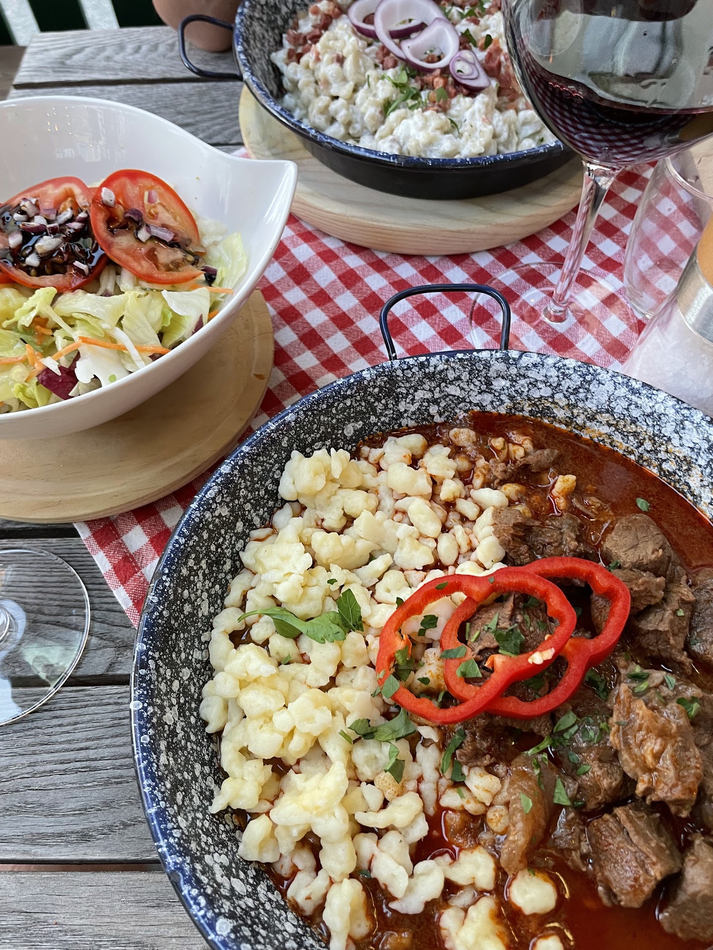 Wir bestellten uns das Wiener Schnitzel sowie das Hรคnchen Paprikasch. Das lustige daran ist, das mein Weib unbedingt Schnitzel wollte. Aber sich letzt endlich fรผr etwas anderes entschieden hat. Als dann unsere Speisen geliefert wurden, und der erste Bissen verzehrt wurde, trieb es meiner Dame die Trรคnen in die Augen. Sanfter und zarter konnte ein Schnitzel nicht sein. Sie bereute es zwar, das sie keins genommen hat. War aber dennoch sehr glรผcklich รผber ihre Speise. Denn auch diese wusste zu รผberzeugen.