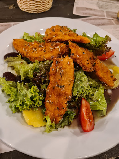 Kulinarisch wurden wir ebenfalls nicht enttäuscht. Wir entschieden uns für den Backhendlsalat und den Schlemmer-Teller, die beide ausgezeichnet schmeckten. Der Salat war frisch und knackig, das Backhendl zart und perfekt gewürzt. Der Schlemmer-Teller bot eine gelungene Auswahl an traditionellen Schmankerln, die uns das Wasser im Mund zusammenlaufen ließen. Dazu tranken wir einen Apfelmost, der nicht nur erfrischend, sondern auch sehr lecker war – eine wunderbare Ergänzung zu unserem Essen.
