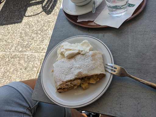 Dan het gebak.. Verschrikkelijk lekker! De Sachertorte smaakte mals en fris, de slagroom rol is zoet en fijn. We hebben 5 gebakjes geprobeerd in onze tijd hier en waren eigenlijk nog lang niet klaar met proeven. Keuze genoeg.