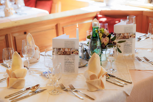 Das vereinbarte Hochzeitsmenü war ein Genuss auf allen Ebenen: Ein kaltes Vorspeisenteller, gefolgt von einer Wiesenkräutersuppe. Beim Hauptgericht konnte zwischen Kalbssteak, Lachsfilet oder einem Räuberspieß gewählt werden – alles hervorragend zubereitet. Die Desservariation rundete unser Menü ab. In den späteren Stunden wurde ein kaltes Jausenbuffet bereit gestellt.