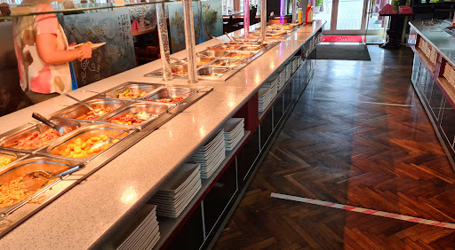 Würde nicht mehr hingehen, wegen folgenden Punkten: Der Junge männliche Kellner war nett, hat uns einen Platz zugewiesen. Jedoch war er wirklich der einzige. Meine Frau war noch am essen, da hat eine andere Kellnerin ihr fast den Teller weggezogen. Ein zweites Getränk haben wir nicht genommen, da es keiner für nötig hielt uns zu fragen ob wir noch was wollen. Rechnung nicht auf Nachfrage erhalten, sollte eigentlich selbstverständlich sein dass man diese ohne Aufforderung bekommt. Qualität des Essens war nicht sehr gut. Möchte jetzt nicht sagen schlecht, aber alles überwürzt, eingetrocknet, und vor allem zu wenig. Es waren die Behälter permanent leer, obwohl an einem Freitag um 19:00 mehr Leute da waren, wurden sie nur sehr sporadisch nachgefüllt. Auch die Sauberkeit lässt stark zu wünschen übrig, Teller sowie Besteck dreckig, Glas war am Rand angeschlagen, daher mögliche Schnittverletzung beim Trinken möglich. Aber das härteste Teig ich euch mit einem Foto: es war ein langes, schwarzes festes Haar bei 8 Schätze dabei. Hab es auf meinem Teller erst gesehen als ich bereits fast alles aufgegessen habe. Hab dann nochmals beim Buffet nachgeschaut, dort hab ich mehrere Haare im Behälter entdeckt. Einfach widerlich 🤮 Und das muss wirklich nicht sein, einfach unappetitlich. Also alles zusammen gefasst: nie wieder! Kellner teilweise unfreundlich, überschaubare Auswahl, davon alles eingetrocknet und zu wenig verfügbar, dreckig und möglicherweise Steuerhinterziehung, da es erst nach mehrmaliger Aufforderung von mir eine Rechnung bekommen habe. Wir gehen künftig nur noch zum Buffet im Kino bei...