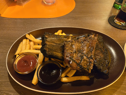 Die SpareRipps waren sehr gut im Smoker gemacht, dennoch war eine Seite komplett verbrannt, sodass man es nicht genießen konnte und es war nicht gut gewürzt. Denn es schmeckte nur nach Fleisch. Als Beilage kam eine Portion Pommes dazu mit Ketchup und ich nahm mir noch eine Barbecue Soße dazu (ohne der Soße, hätten die Ripperl nichts mit Barbecue/Grill vom Geschmack her zu tun). Wir hatten auch noch ein Wagju Burger für einen stolzen Preis, der naja, auch in Ordnung war.