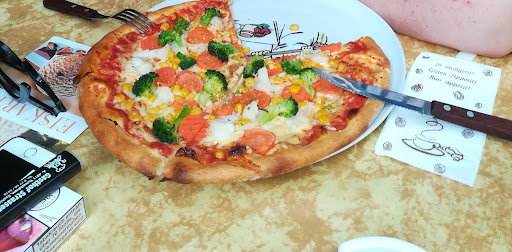 Die Pizza Margherita war in Ordnung, aber die Gemüsepizza toppte alles bis jetzt gesehene: Man nehme einen Pizzateig belege ihn mit Tomaten und Käse, und nehme gefrorenes Kaisergemüse und packe das noch rauf.. Vor allem wurde das Gemüse aus dem Wasser gefischt und nach der fertig gebackenen Pizza darauf garniert, also nicht mitgebacken, wo der Gedanke eigtl. schon abartig ist aber vielleicht hätte es die Riffelungen aus den Karotten rausgebrannt :)