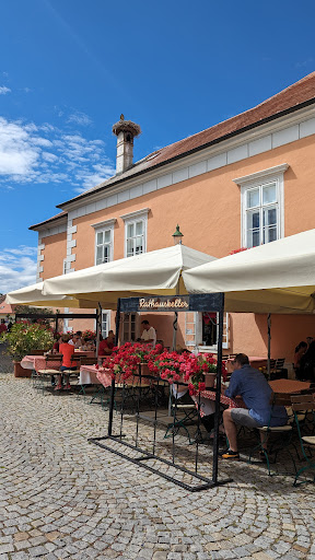Ich war in den letzten Jahren einige Male im Rathauskeller zu Gast. Die Küche ist mir weder besonders negativ noch positiv in Erinnerung. Da dieses Lokal eines von wenigen ist, die an einem herrlich sonnigen Februartag im Freien bewirten, haben einige Freunde und ich uns dazu entschieden, dort die Sonne bei einigen Getränken bzw. bei einem Kaffee zu genießen.