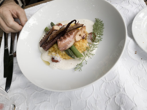 Fazit: die Chefin ist bemüht, das Personal lässt komplett nach. Dienst nach Vorschrift, keine eigenständiges Denken und keine Orientierung an den Bedürfnissen der Gäste. Sehr teures Lokal, Speisen zwischen 3 bis 4 Sterne. Ausgereizte lange Wartezeiten auf Hauptgerichte, 0 Sterne- wer innerhalb von 2 Stunden seinen Besuch absolvieren möchte, sollte hier das Weite suchen!!! - 3-3,5 Stunden sind hier üblicher. Interne Kommunikation scheinbar mangelhaft, sonst hätte der Kellner mit der Glatze über die Preisaufteilung des Aperitifs Bescheid gewusst und hätte sich seine Unfreundlichkeit ersparen können. Wird schnell ein Kellner benötigt, kommt einfach niemand für längere Zeit. Die Tischdeckerin bzw. Auftischdame für Getränke sind für die Aufnahme der Bestellungen nicht zuständig.