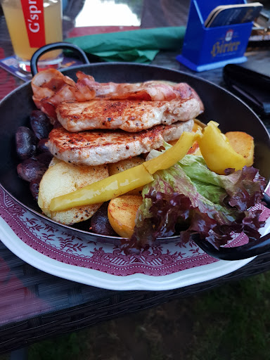 Read moreHaben eine Pause einlegen müssen und sind auf diesen in einem kleine Tal abgelegenen Gasthof gestoßen. Man kann aber gleich vorweg nehmen, dass sich der Abstecher nicht großartig lohnt. Man sitzt auf der Terrasse zwar nett mitten im Grünen am Rande einer Wiese mit Blick auf einen Buckel, allerdings haben bei tiefstehender Sonne nur wenige Plätze Schatten. Außerdem ist es eher ein Nachteil, dass fast ausschließlich die großen rechteckigen Tische für 12 Personen zur Auswahl stehen. Das Essen war in Ordnung, aber gewiss keine Offenbarung. Das Schweinsbrüstl mit zwei Semmelknödel, quasi Schweinebauch in einer hellen Soße war für den Preis (8,40 €) anständig. Die Pommes (2,50 €) und der Sommersalat (3,50 €) nur mäßig. Als Getränke wurden 0,5l Gespritzter Apfelsaft (3,20 €) und Gespritzter Johann (3,50 €) serviert. Unsere Bedienung Elisabeth war freundlich, allerdings strahlen die Wirtsleute selbst keine große Fröhlichkeit aus und sind eher recht ollwern....