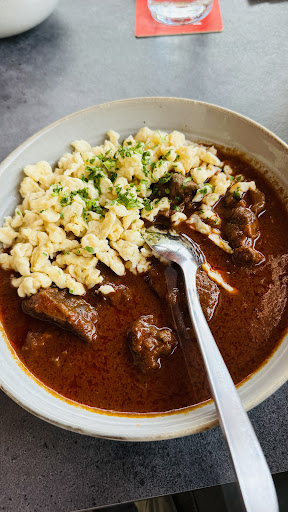 Read moreWir waren mit den Rädern den ganzen Tag unterwegs gewesen und hatten abends Hunger. Und dann das: Dienstags ist im ganzen Dorf Ruhetag! Im ganzen Dorf? Nein, denn es gibt ja die Dorfstub'n! Eigentlich hatte die Küche der Dorfstub'n allerdings schon geschlossen (nach 19.30!), aber für uns hat jemand dann doch noch mal den Herd angeschmissen. Flädlesuppe und Gulasch mit Spätzle. Dazu Hollerschorle und gezapftes Radler. Wir waren im 7. Himmel! Es war sehr lecker, und der Service war aufmerksam, außerordentlich freundlich und schnell. So wird uns Dorfgastein doch noch in guter...