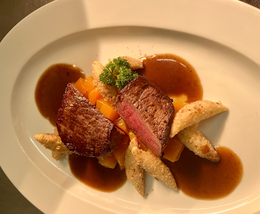 Read moreZu den Wildwochen wollte ich mir einen Hirschbraten bestellen, üblicherweise mit Rotkraut und Semmelknödel. Leider gibt es diesen nicht. Es gibt Rehragout mit Serviettenknödel oder Hirschrücken-Medaillons mit Steinpilz-Kruste mit Pfefferjus, Maroni und Kroketten. In der Speisekarte stehen eigentlich nur die Hauptspeisen für Wild. Andere Standardgerichte (Schnitzel, Schweinsbraten, Kinderschnitzel, ...) standen nicht drin. Die sind nur online abrufbar. Das Fleisch Rehragout war unterschiedlicher Konsistenz - machen Stücke hart, die meisten aber mürbe, also weich. Geschmacklich wie man es von einem Rehragout gewohnt ist, also lecker. Die Hirschmedaillons waren scharf angebraten, innen durch, geschmacklich allerdings nicht an das heranreichend, was man sich erwartet. Die Pfefferjus hat anscheinend einer Rotwein-Preiselbeer-Sauce weichen müssen, auf jedem Medaillon war ca.7 mm dick eine Kräuter-Paste aufgetragen, also nichts mit Steinpilz. Geschmacklich war die Sauce schrecklich, das Fleisch flachsig. Bei einem Medaillon hat anscheinend der Koch schon einen Streifen runtergeschnitten, also waren am Teller 2,75 Medaillons. Rehragout hat 14,90 EUR gekostet, Preis-Leistung in Ordnung. Hirschrücken um 23,90 EUR für die Leistung überteuert. Gerechtfertigt wären