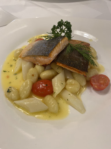 During our stay in the hotel next door we had the opportunity to visit the restaurant next door as part of the voucher, where we were advised to make a reservation early, as it is the only restaurant in town open on Mondays. We were greeted and seated by friendly staff (two ladies). We ordered fish, pasta with salmon and gnocci with chicken supreme. The fish and chips was okay so 6/10. However, the pasta with salmon was over salted and we returned the gnocci after a few bites. The gnocci was tasteless, the chicken was dry and the sauce that was served with it was literally "bland". When we told the staff that the food was really tasteless and poor quality - store bought, we were told that the meat was really dry, but nevertheless, and I quote : “this is how we do it here”. As we were leaving we were caught by the waiter (young man) who arrogantly hollered at us that we hadn't paid yet, while we stopped at the restaurant's reception. Unfortunately, it was obvious that the wait staff was only nice until the customer had a comment about the food. The restaurant is mainly frequented by tourists, so they don't take care of a dissatisfied customer now and then. On a positive note, we were not charged for our meal, but unfortunately we did not leave with a good feeling and therefore do not recommend...