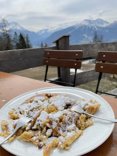 Heute war es sehr windig. Gefährlich windig. Stattdessen dass der aussennbereich geschlossen wird war er offen aber die service Kräfte kamen so gut wie nie raus um zu bedienen, obwohl ca 15 Leute da sassen. Also bin ich rein an die Theke, habe extra geduldig gewartet da alles sehr gehetzt und busy schien. Auf meine Fragen ob sie a) draußen generell bedienen ("nein ist zu gefährlich ") fragte ich ob ich nen Blick in ne Karte werfen könnte sodass ich direkt am Tresen bestellen würde. Auf meine Frage bekam ich einen giftigen Blick und die Auskunft die Karte würde ja draußen am Tisch liegen. (Anstatt mir einfach ne Karte zu geben da ja eh niemand bedient?!?) Ich verstehe ja dass es stressig werden kann und vermutlich konnte die Dame um die es geht nichts für die Gnadenlos fehlkalkulierte Personalplanung. Nach etlichen todesblicken, welche ich überlebte, gab ich unter Schnaufen und nachfragen der Dame meine Bestellung auf. Aber bei ihrer Anspannung sollte sie wirklich lieber zuhause bleiben. Der nachbartisch bekam übrigens bei seiner Bestellung erst den Strudel und dann das Bier 😄sie warteten um die 25 Minuten. Der Ausblick und nette mitwanderer haben dann dem Tag doch noch eine tolle...