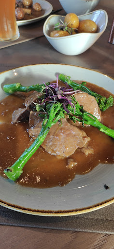 Ate here on a wet Saturday evening. Got a table fine without a reservation and they welcomed our dog too. Once seated, we had our drinks order taken followed shortly after by our food. We then waited around 45 minutes with no sign of our food. We finally asked how long it was going to be and could see the puzzled faces of the kitchen staff. The waiter we ordered with appeared to show them the order going through but then nobody came and told us what was going on. They just continued taking food to other tables. The lack of communication was really frustrating. We went to walk out to be told that our food was now ready, almost an hour after ordering. We did stay and eat our food. It was very nice. The lamb shank was excellent. The veal cheeks were very tasty too. We still aren’t sure if it was our food or if they took it from another order. The staff didn’t really seem to care either way and it left us feeling very frustrated and disappointed after looking forward to a nice meal. It looked as though we weren’t the only ones who had to wait a long time for food. Maybe it was a busy rush with the thunderstorm hitting but I’d expect the staff...