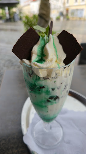 Read moreWir waren bisher hauptsächlich für Kaffee und Eis hier. Die Bedienung ist an sich ganz nett, aber ein wenig unbeholfen im Umgang mit Kindern. Als ich mit meiner 5 jährigen Nichte dort war, habe ich um den Schinken-Käse-Toast für sie gebeten, allerdings ungetoastet - da war der Kellner schon mal verwirrt :D und kam dann mit dem Toast, zwar ungetoastet, allerdings war der zieeemlich gepfeffert, wo ich mir denk: ich hab ihm ja gesagt, der Toast ist für die Kleine... Da kann man eigentlich schon verlangen, dass mitgedacht und keine solche Menge Pfeffer verwendet wird... Zumal ich als Gast ja nicht wissen kann, dass in dem Lokal der Toast gepfeffert wird, somit konnte ich es schlecht dazu sagen... Die Eiskarten sind schon ziemlich alt und vieles davon haben die gar nicht (mehr) im Sortiment. Könnte man mal erneuern und aktualisieren. Aber sonst muss man sagen, sind Eis und Getränke immer gut gewesen. Es war auch kein Problem, das Vanilleeis im Eiskaffee gegen Haselnusseis auszutauschen :D Ambiente ist im Garten sehr nett, gute Sonnenschirme und tolle Ventilatoren mit Sprühwasser...