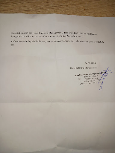 in Form eines Bildes einer schriftlichen, mit Unterschrift und hoteleigenem Stempel versehenen Bestätigung des Gegenteils, welche mir freundlicherweise von Ihrem Servicepersonal auf Nachfrage überlassen wurde.