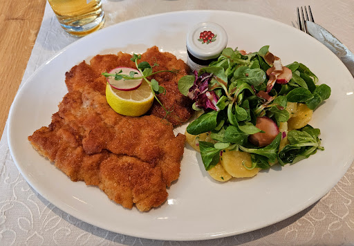 Wir haben den Föhrenhof besucht, weil er der Drehort für den Gasthof Wilder Kaiser beim Bergdoktor ist und weil die Küche ausgezeichnet ist. Das Ambiente ist eine perfekte Mischung aus Tradition und Moderne. Die angebotenen Speisen Klängen alle toll und sahen auch super aus. Wir hatten eine wunderbare Pilzcreme Suppe, Spinatknödel und das echte Wiener Schnitzel. Alles hat herrlich gut geschmeckt. Die Portionen waren sehr gut und dem Preis mehr als angemessen. Die Bedienung (unter anderem auch die Inhaberin) war sehr entgegenkommend und herzlich, wir haben uns sehr willkommen gefühlt. Auf unsere Frage ob in einem der Gerüchte Kümmel enthalten ist wurde aufmerksam reagiert, der Kellner brachte uns dann netterweise einen Salat, bei dem er von sich aus in der Küche darum gebeten hat den Krautsalat wegzulassen, weil dieser Kümmel enthält. Darüber haben wir uns sehr gefreut! Die Spinatknödel waren die besten die wir je gegessen haben. Leider hatten wir nicht genug Hunger um auch noch den Nachtisch zu probieren, aber wir kommen definitiv zurück! Danke für die...