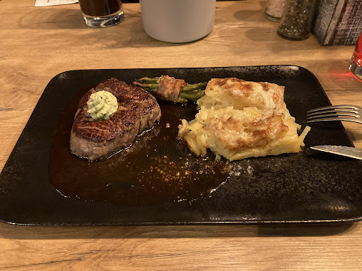 Read moreWir waren während unseres Wochenendtrips einmal Abendessen und einmal am Frühstücksbuffet Zum Abendessen, die Servicekräfte sind sehr bemüht und freundlich das hat man durchaus gemerkt, allerdings merkt man auch, dass manche mit einer meiner Meinung nach normalen Lokalfülle überfordert sind. Mein Partner und ich haben uns für ein Zwiebelrostbraten mit BRATkartoffeln und Schnitzel mit BRATkartoffeln entschieden… Nunja der Braten war durchzogen mit Sehnen, die Bohnen angebrannt und die Bratkartoffeln waren keine Bratkartoffeln sondern lediglich Rosmarinkartoffeln. Das Schnitzel war gut allerdings eben auch mit Rosmarinkartoffeln statt Bratkartoffeln. Die Kartoffeln waren gut, aber eben nicht das worauf wir uns gefreut hatten. Im gesamten werden wir hier nicht mehr zum Abendessen kommen bzw. nur noch einfache Gerichte wählen. Nun zum Frühstück: wir hatten uns sehr gefreut, aber wenn man bei diesen Preisen Tiefkühlbackware erhält und Gurken die matschig sind und sogar der Anschnitt der angefrorenen Gurke mit am Buffet ist, merkt man das hier nicht wirklich auf Qualität geachtet wird. Die Säfte sind viel zu süß und auch nicht frisch. Der Rest am Buffet war total in Ordnung und auch hier das Personal sehr freundlich!