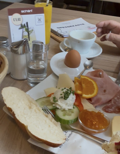Diese Rezension ist eine Antwort auf die Antwort des Inhabers: Hallo, und gerne, habt es euch auch verdient ;) Es war zwar etwas viel los und die Mitarbeiter waren ziemlich beschäftigt, dennoch wurden wir sehr schnell bedient, und das auch noch sehr freundlich. Kindersitz (von IKEA, sehr praktisch) ist vorhanden und sauber. Das Buffet hatte auch eine gute Auswahl und wurde konstant nachbestückt, bei der Bestellung hat man uns auch sofort ein Ei angeboten (mit dem Hinweis, dass es nicht im Buffet enthalten ist). Außerdem gibt es einen Imkerhonig und nicht die Standardplastikportion von Darbo oder wem auch immer. Bei den Marmeladen gibt es sowohl eine (anscheinend) selbstgemachte, als auch die vorportionierten. Milch gibt es auch Laktosefrei, ich glaube sogar, Planzenmilch (Soja?) gesehen zu haben. So muss ein Frühstück aussehen! Im Nachhinein hätte ich noch nach einem angebratenen Speck fragen sollen...