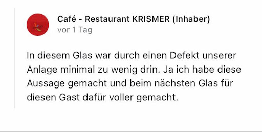 Bin sehr schockiert. Dies ist meine erste Bewertung, normalerweise schreibe ich keine Bewertungen, aber hier muss es fast sein. Alles fing an, als ich am Tisch draußen fast 10 Minuten gewartet bis mich jemand bedient. (Es war außer mir nur noch ein Tisch auf der Terrasse, welcher schon ausgetrunken hat) Da niemand gekommen ist bin ich rein und habe mich da hin gesetzt. Drinnen waren noch 2 Tische besetzt. Die 4 Bedienungen sind alle an der Kasse gestanden und haben gequatscht. Endlich hat man mich bedient. (Sehr unfreundlich) das Essen hat gut geschmeckt, nur die Portion war etwas klein. Jedenfalls hat man mich während der ganzen Zeit beim Essen nicht einmal gefragt ob es schmeckt. Die Kellnerin ist sogar die ganze Zeit gegenüber von mir gestanden… sie hätte nicht mal herkommen müssen um zu fragen. Doch sie hat mir lieber den Rücken gekehrt, ein Eis gegessen und über den Unterhalt von ihrem Mann laut gesprochen… der Tisch neben mir ist schon gegangen, der Teller wurde abgeräumt aber der Tisch nie abgewischt.EKELHAFT!! Der Tisch auf der Terrasse ist nun reingekommen zum zahlen, sie haben sich auch beschwert dass niemand rausgekommen ist. Dann haben sie meinen Teller wortlos abgeräumt, wieder nichtmal gefragt ob es geschmeckt hat. Jetzt sitze ich schon 15 Minuten da ohne Getränk und essen. Ich hätte gerne noch ein verlängerter bestellt, wurde aber nicht mehr bedient. Hauptsache die Bedienungen haben ihren Spaß … Wirklich wenn ich der Chef wäre würde ich diesem Servicepersonal mal lernen freundlich zu sein und wie man Gäste bedient. Wenn ich nicht selber irgendwann zahlen gerufen hätte wäre nie jemand gekommen… 4 Kellner für 4 Tische und funktioniert trotzdem nicht. Ich kann nur eines sagen, faule Damen Es tut mir leid irgendwie für die schlechte Bewertung Andernfalls finde ich es eine Frechheit, man zahlt mittlerweile überall ein Vermögen und wird nicht mal freundlich bedient. Also muss die Bewertung sein Ich hätte nichts gesagt wenn viel los gewesen wäre, aber wie...
