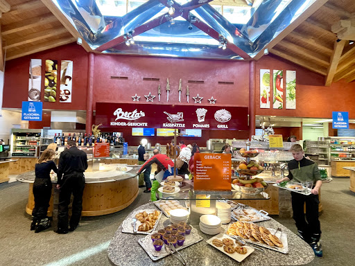 Da dies natürlich so gut wie alle Familien mit Ihren Kindern aus der Skischule machen, ist es dementsprechend zu dieser Zeit extrem voll und durch das Selbstbedienungskonzept mit Wartezeiten an dem Essensstationen verbunden.