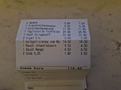 Ein kleiner Kritikpunkt: Der Gruß aus der Küche wurde extra berechnet, was bei den gehobenen Preisen vielleicht nicht unbedingt nötig wäre.