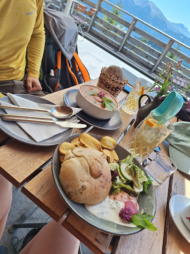 Read moreSehr nette Bedienung, wir sind hier nach einem Gewitter komplett nass gestrandet. Die Bedienung gab uns Handtücher und hat unsere nassen Klamotten zum trocknen mitgenommen. Da es uns so gut gefallen hat sind wir noch einmal hier hergekommen. Die Gasstätte ist aufgeteilt in oberen und unteren Teil. Unten gibt es eine separate Standard Karte mit normalem essen was man überall bekommt. Wir waren in dem oberen Teil, hier gibt es zwar eine kleinere Karte mit Recht kleine Auswahl aber dafür ist hier alles selbstgemacht und sehr lecker. Die Essensauswahl ist eher Traditionell gehalten. Wir haben den Erdäpfel Gulasch, Cheeseburger und den Scheiterhaufen gegessen. Alles war super lecker, der Cheeseburger wird vor Ort komplett zubereitet, der Patty wird im selbstgemachten Teig gepackt und so aufgebacken. Geschmacklich war der sehr lecker und zum empfehlen. Der Kartoffelgulasch hat ebenfalls sehr lecker geschmeckt. Zu dem Scheiterhaufen, extrem lecker, viele wollen den Kaiserschmarrn haben aber hier bekommt ihr etwas besseres. Gefüllt mit geriebenen Äpfeln, dazu eine frische Schlagsahne und einem selbstgemachten Minze Eis was sehr lecker und intensiv im Geschmack war. Wir würden definitiv wiederkommen wenn wir in dem Gebiet Urlaub machen würden. Da hier alles frisch zubereitet wird kann es passieren das man den Scheiterhaufen nicht bekommt. Der Koch bereitet zwar gewisse Anzahl an Portionen, wenn diese aber alle sind, dann sind sie für den Tag alle. (Sieht es aber positiv, hier wird noch richtig gekocht was seine Zeit dauert, alleine die Zubereitungszeit für den Scheiterhaufen beträgt ungefähr 2,5h. Hier wird mit frischen Zutaten gearbeitet und nicht mit Fertiggerichten wie bei vielen...