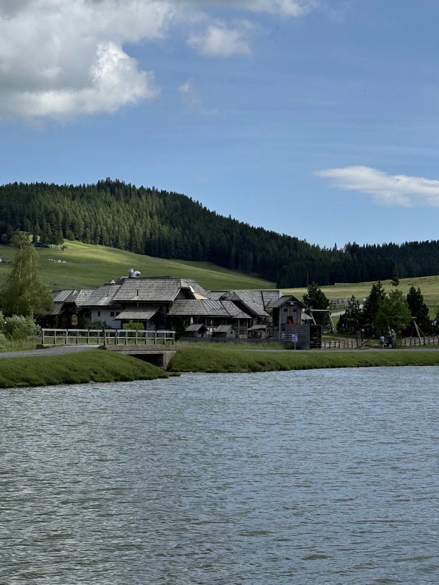 Direkt am Teichalmsee gelegen, ist die Latschenalmhütte eigentlich keine „Hütte“ im klassischen Sinn – eher ein großes, modernes Restaurant mit gemütlichem Alpencharme. Besonders hervorzuheben sind das schöne Ambiente und der freundliche, aufmerksame Service – beides hat mich wirklich überzeugt. Es gibt einen großen Spielplatz direkt daneben – ideal für Familien mit Kindern. Auch Hunde sind willkommen, was den Besuch zusätzlich entspannt macht. Das Speisen- und Getränkeangebot ist vielfältig und typisch österreichisch, mit regionalen Gerichten. Geschmacklich war das Essen in Ordnung, aber nicht überragend – dafür fand ich die Preise etwas zu hoch, was auch den Stern Abzug begründet. Insgesamt aber ein sehr schöner Ort zum Einkehren – besonders wegen der Lage, der Atmosphäre und des Services.
