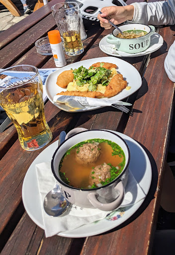 Read moreHad lunch there after the bike tour to the Fuscher Törl. The food was brought to the table very quickly as it was prepared in advance. The service was quick. Unfortunately the liver dumpling was "stretched" with lots of bread cubes, otherwise good soup. The baked chicken fillets with potato salad weren't really convincing, everything tasted industrially prepared. The prices there are of course extreme, which is probably also due to the short operating season and the exposed location. There is also a souvenir shop and it is a popular stop for tourists on the crossing. The panorama is unbeatable and...
