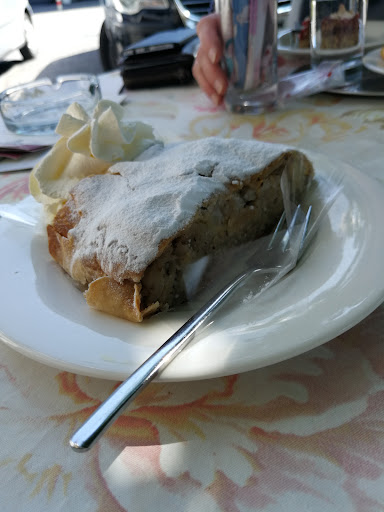 Nicht wirklich gemütlich, laut und leider war die Kuchentheke auch schon so gut wie leer, nur noch "Reste" standen zur Auswahl 🤔 wir entschieden uns für Topfenkuchen und Johannisbeer-Topfenkuchen, dazu Latte Macchiato und Cappuccino mit Sahne.