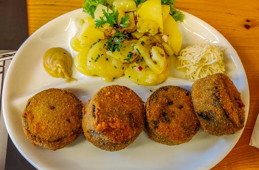 Nun zu den eher negativen Punkten: -Die Kellnerin hat wahrscheinlich nur versucht lustig zu sein, ist aber daran gescheitert. Auf die Nachfrage, ob man Pommes haben kann, kam nur die die schnippische Antwort "Siehst du irgendwo auf der ganzen Karte Pommes?". Das kann man doch auch anders ausdrücken -Es gibt eine einzige rein vegetarische Speiße auf der Karte. In den heutigen Zeit ein wenig schwach, wenn es durchaus genug Alternativen gibt. Positiv zu erwähnen bleibt aber, dass man auf Sonderwünsche eingeht -Die Erdäpfelknödel waren eher hart innen. Also nur mit der Gabel auseinanderziehen ging nicht, da half nur...