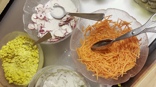 A broad choice of local dishes, comfortable seating inside and an outdoor seating area. The outdoor seating has only limited shade.