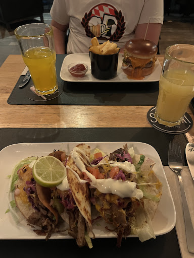 Essen ist sehr Gut, frisch und kommt vor allem heiss an den Tisch. Schön angerichtet und man wird mehr als nur satt. Die verschiedenen Fleischarten werden sehr lecker mariniert und sind perfekt gebraten. Die Wedges werden frisch und vor allem selbst hergestellt und kommen knusprig an den Tisch wie sie sein sollen. Soßen sind ebenfalls Top!