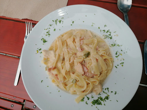 Read moreIst Ok, schön schattig zum Sitzen. Leider war meine Suppe nur lauwarm und die Kartoffeln waren nicht ganz durch. Geschmacklich leider kein Hit, aber wenn man hungrig ist, isst man es halt trotzdem. Unbedingt weiterempfehlen würde ich es jetzt nicht.