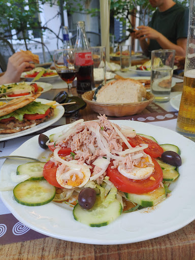 The menu is rich with traditional Greek specialties, including Moussaka, Souvlaki, Tzatziki, and Gyros. Patrons particularly appreciate the hearty meat plates, fresh fish dishes, and a variety of vegetarian options. The restaurant also boasts a Greek-inspired terrace that enhances the dining experience with a Mediterranean atmosphere oai_citation:1,Startsite - El Greco Baden.