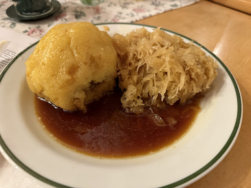 Read moreZwei Mal dort gewesen, und beide Male mussten wir lange (15 min) für Essen anstehen. Nur eine Person hinter dem Tresen, die Bestellungen aufnimmt, Mahlzeiten anrichtet, abwiegt und kassiert, das dauert. Und natürlich steht man selber dem restlichen Servicepersonal ständig im Weg. Endlich an der Reihe hieß es jedesmal kreativ sein bei der Menüwahl. Braten mit Kartoffelknödel? Die Knödel waren aus. Linsen mit Semmelknödel? Gab auch keine Semmelknödel mehr. Fleischknödel mit Sauerkraut? Richtig, natürlich gab's auch keine Fleischknödel. Also zurück zum Tisch und eine halbe Stunde warten, bis der Knödelnachschub kam. Das Essen war zwar beide Male gut, aber die langen Anstehzeiten und dass die Küche offenbar nicht mit den Bestellungen hinterherkommt finde ich...