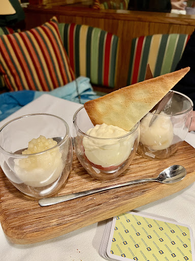 Noch dazu hat meine Frau um eine Kleinlichkeit zum Knappern (Oliven und Kräcker) gefragt: gebracht wurde(nach Absprache) ein „Gedeck“ ,ist auch in Ordnung… aber um den Preis? (2 winzige Aufstriche in Schälchen und 5-6 Räder dünner Jausen Wurst inkl. sehr sehr altem Brot . Soll anscheinende Haugemacht sein. Ist besser Ihr kauft es „frisch“ zu) um unverschämte € 3,80 pro Person = € 7,60 für ein „Gedeck“