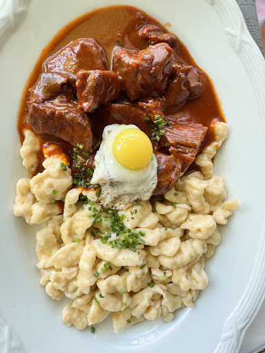Beef Goulash with Spätzle • Calories: ~850–950 kcal • Protein: High from beef • Fat: Rich due to sauce • Carbs: Spätzle adds a hefty carb load ➡️ Very hearty and filling, a true comfort dish, but heavy on calories and fat.