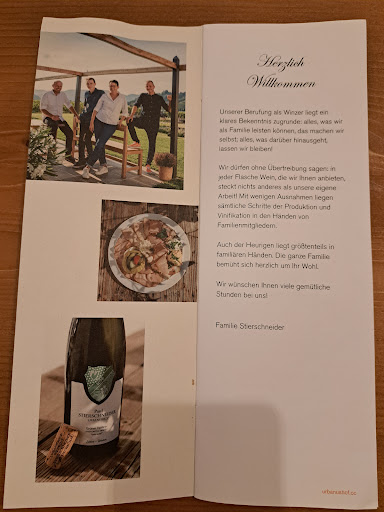 Wir waren auf Empfehlung zur Weinverkostung beim Urbanushof, welche wir eine Woche vorher anfragten. Der äußerst nette Chef des Hauses hieß uns (2 Familien mit 3 Kleinkindern) mit seiner angenehmen Art herzlich willkommen und präsentierte seine Weine mit offensichtlicher Freude. Die Art der Verkostung (die Weine der gleichen Sorte direkt gegenzuverkosten) hat mir persönlich sehr gut gefallen. Man merkt, dass Herr Stierschneider seine Kunden wertschätzt, da er zu unserer Überraschung auch frühere Gäste namentlich erkannte und sogar noch Empfehlungen aussprach, welchen Wein wir für diese kaufen sollten!...