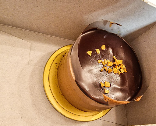 Vollmilch-Schokomousse gefüllt mit einer knusprigen Pistaziencreme auf einem schokoladigen Keksboden ... ich bin dahingeschmolzen. Das Mousse hätte Siegeschancen bei jedem Backwettbewerb in Österreich, sicherlich auch weltweit. Die Kombination mit dem Schoko-Keks-Boden und der knusprigen Pistaziencreme machte dieses Dessert zu einem meiner besten dieses Jahres. Weit bekömmlicher als eine normale Dubai-Schokolade. Einfach hinfahren und abholen,...