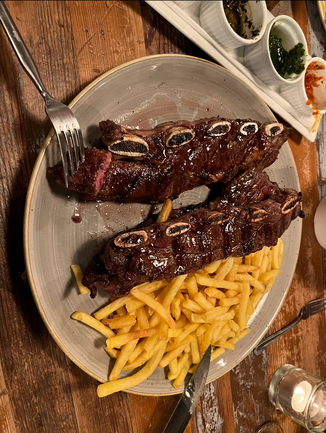 Die Ochsenquerrippe - Ein Gaumenschmaus Nun zum Höhepunkt des Abends: die Ochsenquerrippe. Als passionierter Fleischliebhaber kann ich ohne Zweifel sagen, dass dies eines der besten Steakgerichte ist, das ich je probiert habe. Zart, saftig und voller Geschmack - jedes Bissen war ein wahres Fest für die Sinne. Die Fleischqualität war herausragend und die Zubereitung auf den Punkt genau. Die Ochsenquerrippe im Patagonia Gaissau ist für mich der Inbegriff eines perfekten Steaks.