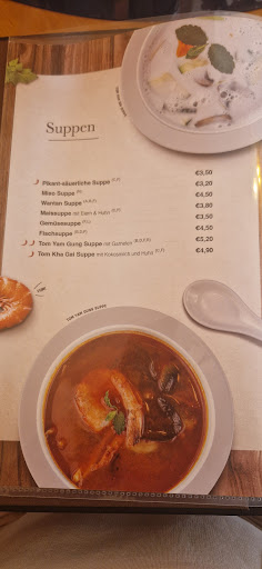 Read moreEDIT na koncu. Przed restauracją jest zaledwie kilka miejsc parkingowych. Posadzono nas przy okrągłym stoliku, byliśmy w 5 osób. Sprawnie podano menu, które były tylko po niemiecku. To jest restauracja a nie bar, a dodatkowo ma dużo dań z sushi, choć sushimaster jest tylko do godziny 15 w sobotę. Znajomi głównie jeździli tu na sushi, ponieważ podobno w okolicy najlepsze. Smak dań ... azjatycki, zrównoważony choć uważam, że powinno być wszystko trochę bardziej pikantne. W szczególności dania, które oznaczone są w karcie jako pikantne. Zupa krewetkowa to bardzo silna pozycja w menu. Doskonałe dobrane składniki, smak nierozgotowanych, wyrazistych warzyw, duże krewetki, choć niestety ze szcątkowymi pancerzykami .. Super. Można tu wracać na tą zupę, choć porcja wielkością nie powala no i powinna być bardziej pikantna. Osiem mięs to był majstersztyk smaku, przyrządzić wszystkie mięsa w taki sposób aby każde zachowało pełnię smaku i konsystencji to sztuka i tu im się udało. Kaczka w sosie mango to kolejne danie, na które będziemy tam wracać. Dużo mango, chrupiąca kaczka ale jednocześnie nie wysuszona na wiór. Trochę możemy ponarzekać na kurczaka chrupiacego, który był dosyć suchy a dodatkowo o zamówiony do niego sos słodko kwaśny było trzeba się upominania. Cześć dań jest bez dodatków, które osobno trzeba dobrać. Ceny restauracyjne ale nie przerażające.