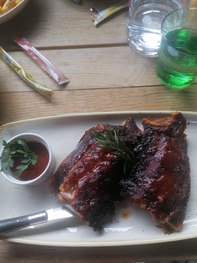 Küche mies, Ambiente gut. Wir waren am 21.06.2025 als Familie zum Abendessen dort. Prinzipiell ist das Lokal schön aufgemacht und hätte durchaus Potential, wenn die Küche besser wäre. Meine Frau und ich entschlossen uns dazu die "Platte für Zwei" zu bestellen. Kosten laut Karte 47,90€. Darauf sollte es folgendes geben: "~ 200 g saftiges Rindersteak | Chicken Wings | Chili Cheese Nuggets | Onion Rings | Fisch Nuggets | Mozzarella Sticks |grüner Salat | dreierlei Dips". Das hörte sich soweit auch recht gut an, bis es dann tatsächlich vor uns stand. Die gravierendsten Mängel waren das Rindersteak, war tatsächlich ein Schweinesteak und die Zwiebelringe, welche tatsächlich dann frittierte Calamari waren. Der Rest war billigste TK Ware (Fischstäbchen aus dem Karton usw.). Alles außer dem Steak in die Fritteuse und fertig. Das Fett triefte nur so aus den Produkten. Als wir dem Servicepersonal dies mitteilten, kam auch der Koch zu uns an den Tisch. Wir fragten, ob das sein Anspruch als gelernter Koch wäre. Die Aussage war lediglich "das wird hier so gemacht". Darauf hin kam auch der Chef zu uns und versuchte sich mit "wir haben erst 2 Tage geöffnet" und "wir bearbeiten gerade die Karte neu" heraus zu reden. Kulanter Weise mussten wir diese Platte nicht bezahlen. Preis laut Karte 47,90€ für TK Produkte und auch falsche Produkte. Bei solch einem Preis hätte man frische Produkte und selbstgemachte Panade erwartet. Hier kannte wohl keiner die bestehende Karte. Handwerklich war die Küche eine reine Katastrophe. Da solche Rezensionen bereits vor Jahren geschrieben wurden, ist das wohl so Masche "Gewinnmaximierung durch TK Ware...." Da der Burger für meinen Sohn als einziges Gericht, aber doch recht gut war, vergebe ich wenigstens einen Stern. Wobei der Preis für Burger, Pommes und Getränk auch recht hoch war mit 28,90€