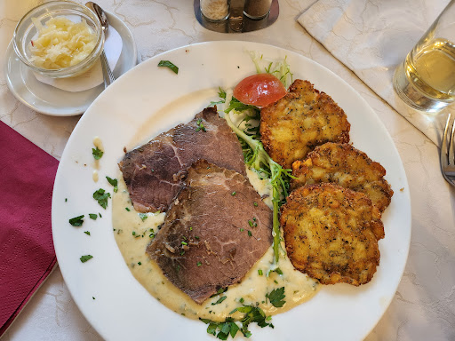 It was an accident that we end up in that restaurant - great reviews, why not? The restaurant looks good. We ordered a soup (frittatensoup), 2 glasses of wine and 3x main dish. Portions were huge and really good. But the service - worst that we ever had. I ordered frittaten soup - never delivered. After saying that I order it to the waiter he told me ,,oh, sorry!". I thought that he will give it to me in a moment. But he never did. We ordered 2 glasses of wine - he gave us 3. (We paid for 3 also) And about the main dishes - every single one was mixed. 1 st person got the meat that person nr 2 ordered, and the fries that person numer 3 ordered. Everyone was switching their meal from each other plates. Food there is great, but I have never seen such bad service. (The person was really nice, but he did nothing correct with the service). I was there with friends so it was just a funny situation for us. But if a situation like that happened in a more formal dinner I would be really mad. I will change my review if everything will be ok when I will visit this place next year. But for now - 3/5. And its still not a bad review if we consider the...